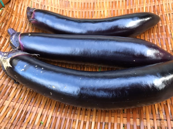 おいしさで人気がとてもありますが、スーパーにはあまり置いておらず市場に出回っていない「ふわとろ長ナス」という品種のナスです。ふわふわトロトロで本当においしく、近所の直売所ではおいしいと有名で即完売になります。