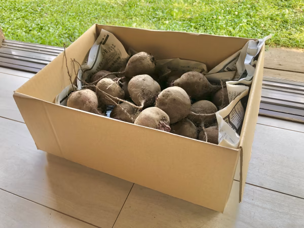 ▼自己紹介 栃木県小山市にて、無肥料無農薬で野菜を作っているグリーンデイズファームと申します。 ▼商品概要 無肥料・無農薬で栽培したビーツです。 無消毒のオーガニック種子を使用しています。 ▼味の特徴・食べ方  生食(スライスしてサラダや角切りでピクルスなど)、 きんぴらのように炒めて、 スープにいれて、 お米やオートミール雑炊に加えたり。 下記のように、 じっくりと火を通すと甘みがより引き立ちます。 ——- オススメは、洗って皮付きのままホイルに包んでオーブンで蒸し焼きです。大きいものはカットして包むと時短になりますが、やはり丸ごとが○ (180度前後で40分〜1時間程度) 串が中まで刺さる位、柔らかくなればOKです。 皮はつるっとむけます。 もしくは、皮付きのままボイル(40分〜1時間程度)します。 ——— その後は、 そのままオイルと塩で食べたり、 ボルシチなどのスープや、サラダ、 お菓子やポテサラの色付けにも使えます。 また、スムージーにするとピンク色がかわいいです! 気分もハッピーになります。 ヨーグルトや牛乳、豆乳、バナナ、ベリー系のフルーツ、リンゴ、ニンジンなどとよく合います。 レモンを加えても。 使いきれないものは、火を通したのち、 ミキサーやブレンダーでピュレ状にして 板状または小分けにして冷凍しても良いですし、 角切りのママ冷凍も。 生のままでも冷蔵庫でしばらくもちます。 新聞などの紙にくるんでビニール袋などで保湿してください。 ▼数量、分量の目安 1キロ、結構あるので すぐに使う分以外は、火を通し冷凍しておくのがオススメです。いつでも手軽に使えます。 ▼栽培/生産方法、こだわり 化成肥料はもちろん、動物性の肥料等も肥料を施していないので雑味が少なく、スッキリと食べやすいです。 草たちと共生させながらも、 草に負けてしまわないよう、とにかく手除草しています。 ▼注文に際しての注意点(配送方法や納期指定など) 新鮮なものをお送りしたいので、 特別な事情を除いて 基本、収穫当日に発送いたします!