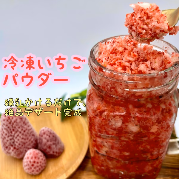 コップなどのうつわに生いちご冷凍パウダーをもってから、練乳をかけて召し上がってみて下さい。