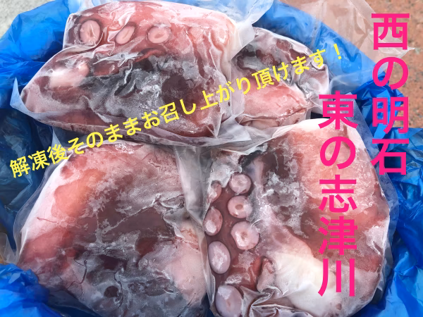 ※生きたタコを素早く締め鮮度維持のため真空パックにて急速冷凍かけております。