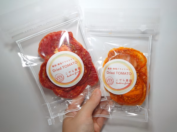 大玉トマトをじっくり24時間乾燥させたドライトマトです。 1kgのトマトが60gまで凝縮されています。 ぎゅーっと凝縮された味をお楽しみください♪ トマトの断面も観察してみると面白いですよ(^^) 赤色の大玉トマト、黄色の大玉トマトの2種類をご用意しております。 どちらも数量限定です。 小腹がすいた時のおやつに最適! ドライトマトなので噛みごたえはあるものの、薄めのスライスで比較的食べやすいかと思います。 無塩・無添加でトマトそのままの味になっております。 持ち運びしやすいサイズなので、カバンに入れてお仕事やお出掛けのお供にもいかがでしょうか。 ▼分量 一袋20g入り 無塩・無添加