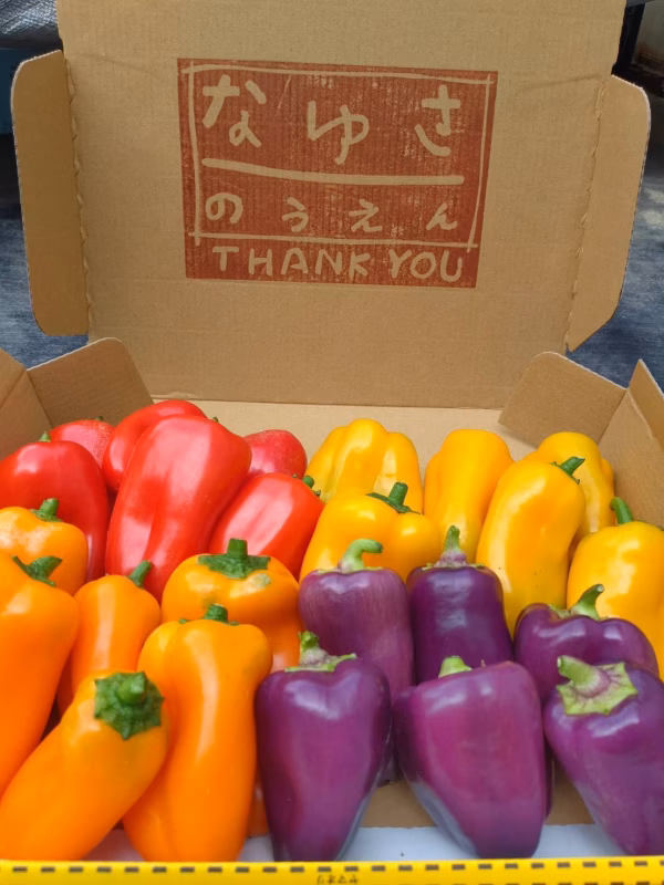 食べきりサイズのミニパプリカ、レッド、ゴールド、オレンジ、パープル4色セットです! ミニパプリカの一つ一つの大きさがバラバラですので写真と個数は変わります。 パープルは元々小さめです。 ※パプリカ(特にレッド)に白っぽいモヤがある物もありますが日焼けによるもので味は変わりません。 コンパクトBOXに入れて発送致します。 収穫のタイミングで4色のそれぞれの数は変わる場合もございます。【必ず4色は入ります】 ※※※ご購入して頂いてから収穫致します。 ミニパプリカの色のつき具合によりご購入から翌日〜3日後の発送にさせて頂きます。 日にち指定はできませんのであらかじめご了承下さい。 ※※※暑くなってきていますので、萎び感等でる場合がございますのでご理解の上ご購入お願い致します。 東北、関東エリア限定販売です。 常温発送の為、翌日受取可能な地域の方のみお願い致します。 鮮度保持の為翌日の午前着(または最短の時間)で発送させて頂きます。 除草マルチわ防虫ネット等を使用し、減農薬栽培をしておりすので虫食い跡等がある場合もございますので予めご了承ください。