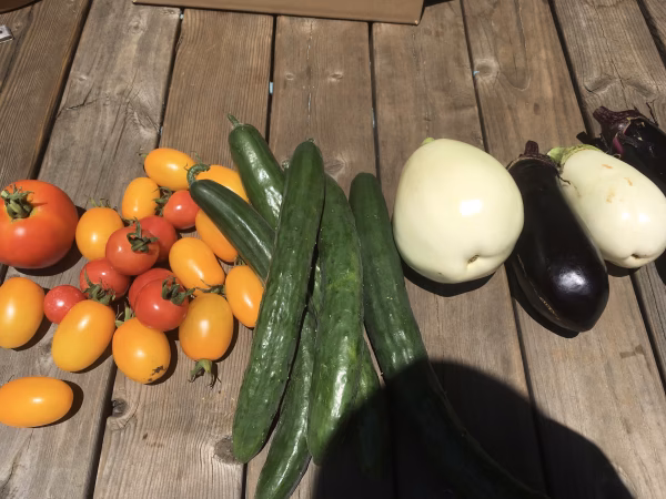 トマトやキュウリはそのままガブリっ!ナスは炒めるととろっとします。
