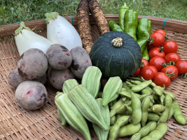 すべて農薬、化学肥料不使用で、子供にも安心して食べていただける方法で栽培した野菜です。米ぬかなどを発酵させて作った有機肥料であるボカシ肥料を使っておりますので、土にアミノ酸がたっぷり含まれており、うまみ成分が増した野菜セットです!
