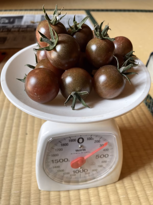 今年も出品します!  CO2排出量が少なく、総ビタミン量の多い露地栽培にこだわって栽培しています。元々は家族で食べるため農薬を使わない野菜を作り始めたのですが、周囲の意見で出品することにしました。  イタリアン・トマトのトスカーナバイオレット(1.0kg)。葡萄のような口どけで抗酸化作用のアントシアニンが豊富なトマトです。知る人ぞ知る。美容に良いと評判の品種です。