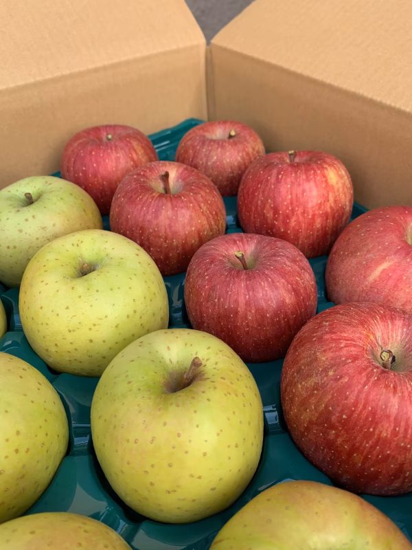 早生ふじとトキを半々で箱詰めします。セットで食べ比べてください。