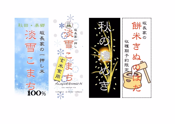 秋田県生まれの優良品種4種を優良米生産地域にて当家当主が思いを込めて作り、3合の小袋に入れて試しやすくまとめました。