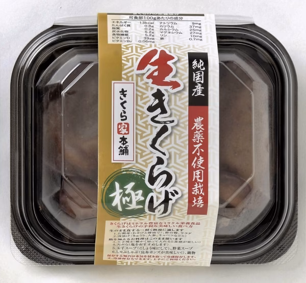 きくらげ本舗の「きくらげ」は徹底した品質管理の元、福島県石川町の自社工場のハウスで菌床から育て収穫しています。その「生きくらげ(100g)」です。 ■キクラゲは栄養の宝箱 ビタミンD:100gあたりに含まれるビタミンDは128.5μgと食品の中でもトップクラス!(シイタケの場合は12.7μg、マイタケの場合は19.8μg) 食物繊維:なんとゴボウの約3倍! そんな生きくらげを、自分の好みの料理にくわえるだけで栄養満点の料理にはやがわり♪ ■料理の例 ・野菜炒め、刺身、鍋