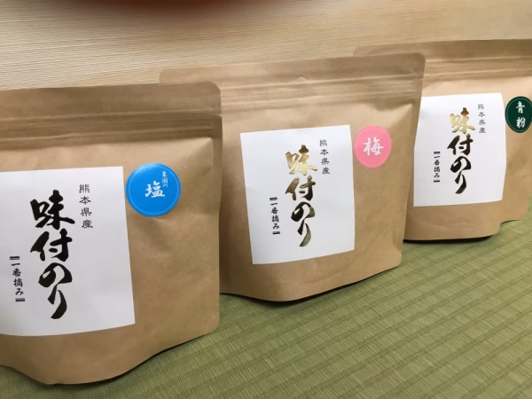 なかなか味付けのりには加工しない一番摘み海苔を贅沢に使い、食べるとパリパリとしながらも口どけの良い食感が特徴です。