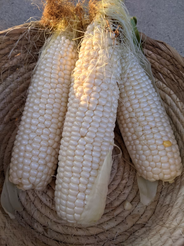 品種はスーパーホワイトコーンで甘み抜群の白いとうもろこしです。スッキリとした食感をお楽しみください。