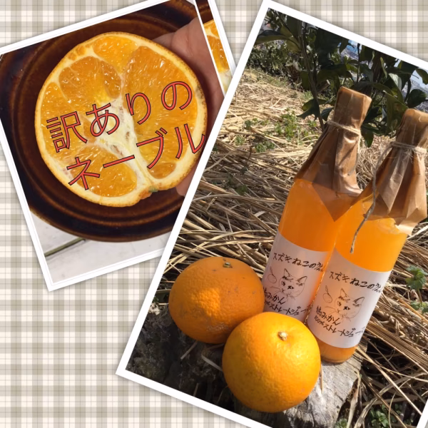 スズキねこ農園の選りすぐり農薬を使わず育てた青島みかんのみ使用したジュースです。