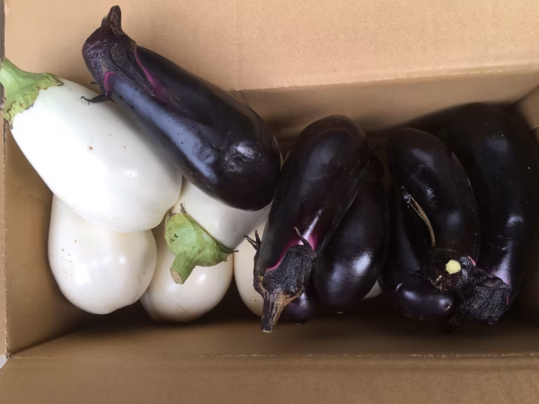 市場にはあまり出回っていない無農薬での野菜です^_^ぜひ一度安全新鮮ナスを食べてみてください!