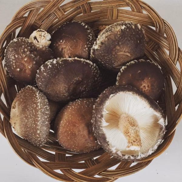 309は香りよくプリプリ。今回の出品分は「小ぶりな」サイズが中心です。613はずんぐり、軸まで食べ応えあります。春らしいしいたけに育っています。