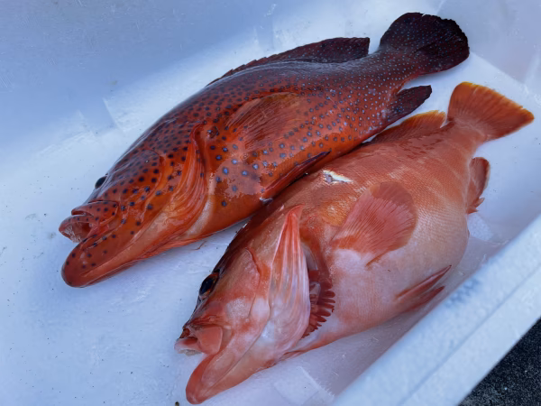 素潜りでの魚突きで捕獲しています。常に頭、エラ付近を狙うように意識していますが、体に撃つ事もあります。