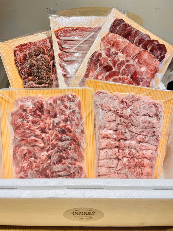 【特徴】ジャージー牛のお肉は、オレイン酸の含有量が豊富なため柔らかく、コクがあり旨味も強いです。黒毛和牛にも引けを取らないほどの美味しさと言われています。さらにβカロテンやヘム鉄など栄養も豊富です。またジャージーの肉は加熱しても水分の漏れ出しが少なく、ステーキなどにすると肉汁が多くジューシーなステーキになります。