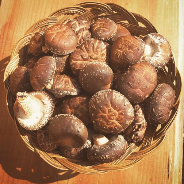 今回は、613、324、327、115。小さなサイズはまるっと茶碗蒸しにもぴったり!ブルースファームの主軸である簡易ハウス内のしいたけほど形は整っていません。寒さの中でたくましく育ったワイルドな食感をどうぞ!
