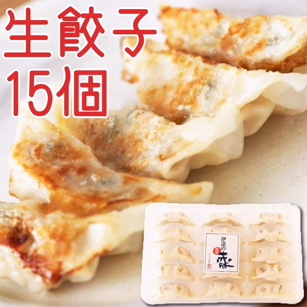- 野菜【キャベツ(国産)、にら(国産)、ねぎ(国産)】、伊達の赤豚(宮城県産)、豚脂(国産)、にんにくペースト、食塩、しょうゆ(大豆・小麦を含む)、砂糖、植物油脂(大豆を含む)、香辛料(大豆を含む)、皮【小麦粉(国内製造)、植物油脂、食塩)】/加工でん粉、増粘剤(加工でん粉)、pH調整剤、調味料(アミノ酸等)、酒精、酸化防止剤(ビタミンE)