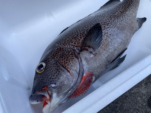 素潜りでの魚突きで捕獲しています。常に頭、エラ付近を狙うように意識していますが、体に撃つ事もあります。