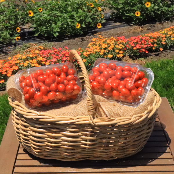 当社で育種した新種のフルーツのようなミニトマト「シュガープラム」を