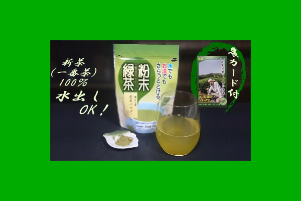 新茶100%、抹茶不使用なので、新茶の旨味、香りを十分味わっていただける粉末緑茶です。