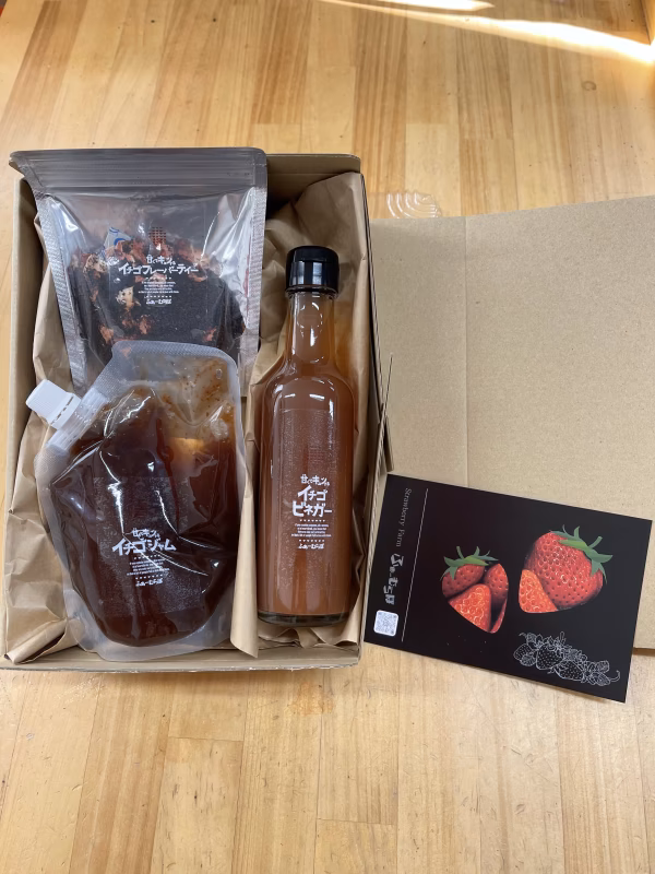 群馬県産いちごのみを使用して作ったいちご酢・いちごジャム・いちごの紅茶の3点セット。