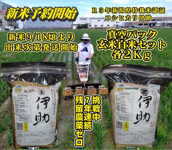 当農園の栽培したコシヒカリ伊助は、新潟県より無農薬・無化学肥料栽培の特別栽培農産物の指定を戴いています。