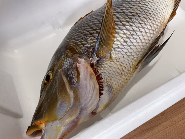 素潜りでの魚突きで捕獲しています。常に頭、エラ付近を狙うように意識していますが、体に撃つ事もあります。