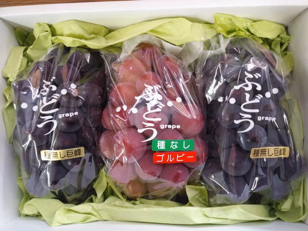 フルーツ大国、山梨県の中でも果樹地帯、南アルプス市からぶどうをお届けします。今回はぶどうの王様『巨峰』と『悟紅玉(旧名ゴルビー)』という品種になります。