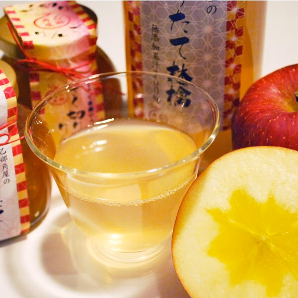 りんごジュース、りんごジュレ、りんご酢、りんごジャムのセットです。