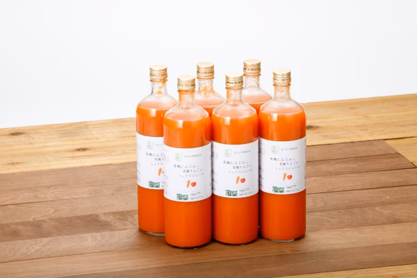 有機農園モアーク(つくば農場)で育てた人参を、農園内の工場でジュースにしました。冬の甘みののった人参をジュースにしているので、濃厚で甘みのあるジュースに仕上がっています。