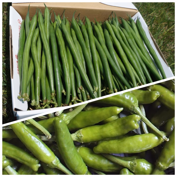 ※色が濃く、まっすぐなものが多い品種なのですが、この夏の高温のため、現在はさやの太さが一定でなかったり、伸びきれずに短いものが多くなっております。ご了承くださいませ。(うちだけでなく、他の生産者さんも、この夏の高温にやられ、市場の規格内での出荷ができずにいるようです。)