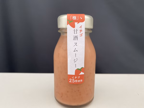 「甘酒が体にいいのは知ってるけど粒々がちょっと苦手」という方にも手にとっていただけるように、麹甘酒特有粒々感をペースト化し、またイチゴの比率を甘酒に対し2.5倍とすることで、甘酒が苦手な方にも飲んでいただけるように開発しました。またイチゴが豊富に入っていますので、イチゴ好きの方に満足していただける味わいになっています。