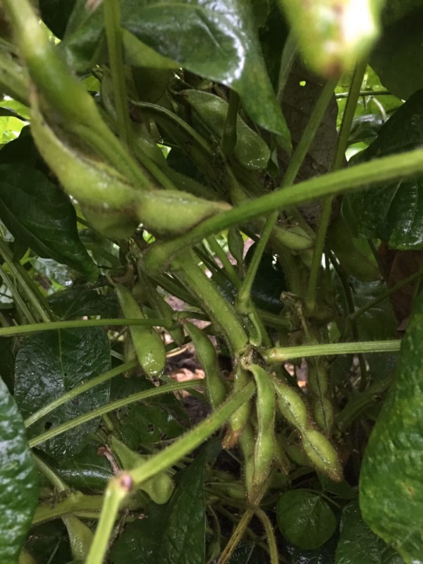 さやの色はまだ青く、身太りが小さく、苦味の少ない、優しい味わいで、黒さやの中では一番美しい色あいの時期です。