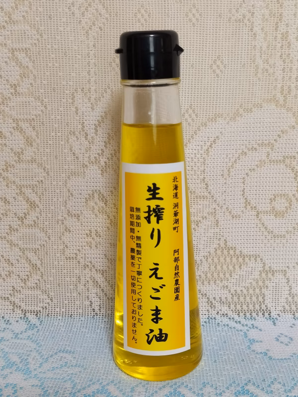自家搾り(非加熱圧搾)しているえごま油は精製せずに瓶詰めしているため、えごま油が持つ本来の色と香りと味を楽しめます。