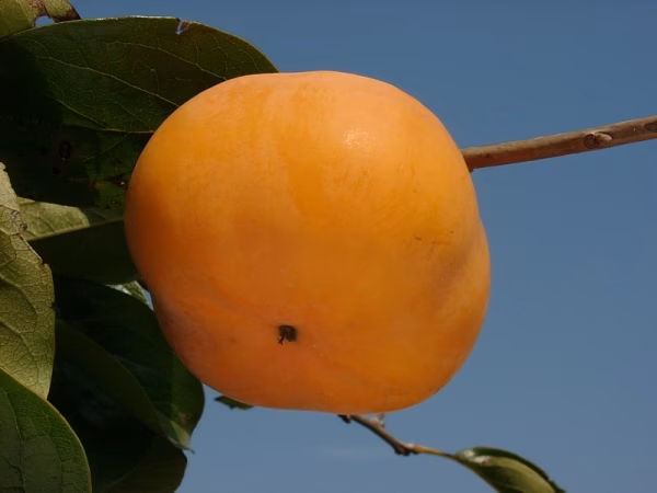 三重県特産の甘柿の「早生次郎柿」で、「富有柿」とともに甘柿の東西横綱です。果肉はシャキシャキして、糖度は15~17度と大変甘く、高接ぎ。樹齢に相応の円熟した味が特徴です。
