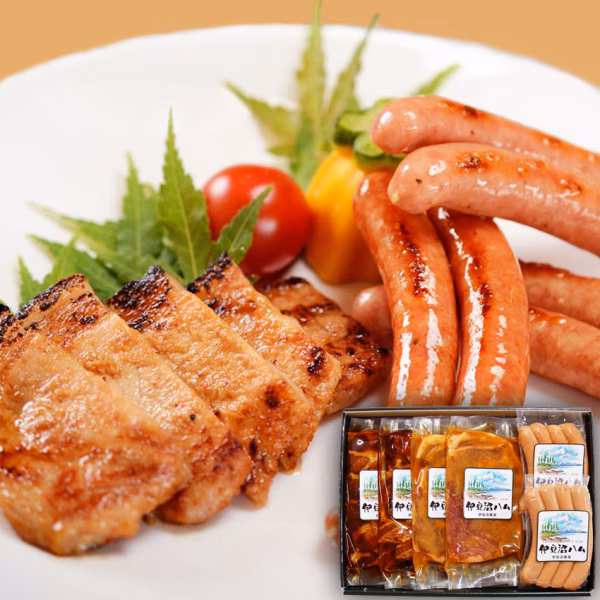 - <肩ロース味噌漬け> 豚ロース肉(宮城県産)、味噌、糖類(砂糖、水あめ)、発酵調味料、食塩、たん白加水分解物、香辛料/調味料(アミノ酸等)、酸味料、香辛料抽出物、着色料(ビタミンB2)(原材料の一部に大豆を含む) <豚丼用味付け肉> 豚肩ロース肉、醤油、酒、砂糖、水あめ、果糖ブドウ糖液糖、発酵調味料、食塩、たん白加水分解物、味醂、醸造酢、香辛料、野菜ペースト、野菜エキス、寒天、カラメル色素、酒精、調味料(アミノ酸等)、酸味料、増粘剤(加工デンプン、キサンタン)、酸化防止剤(V.C)、香料、パプリカ色素、甘味料(甘草)(原材料の一部に小麦、大豆、サバ、鶏肉、りんごを含む) <粗挽きウインナー> 豚肉(宮城県産)、食塩、砂糖、香辛料(小麦を含む)/リン酸塩(Na)、調味料(アミノ酸)、酸化防止剤(V.C)、発色剤(亜硝酸Na) <ポークウインナー> 豚肉(宮城県産)、玉ねぎ、食塩、砂糖、香辛料(小麦を含む)/リン酸塩(Na)、調味料(アミノ酸)、酸化防止剤(V.C)、発色剤(亜硝酸Na)