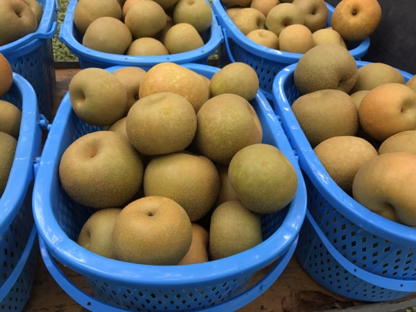 1日の気温差で甘くてみずみずしい梨です。
