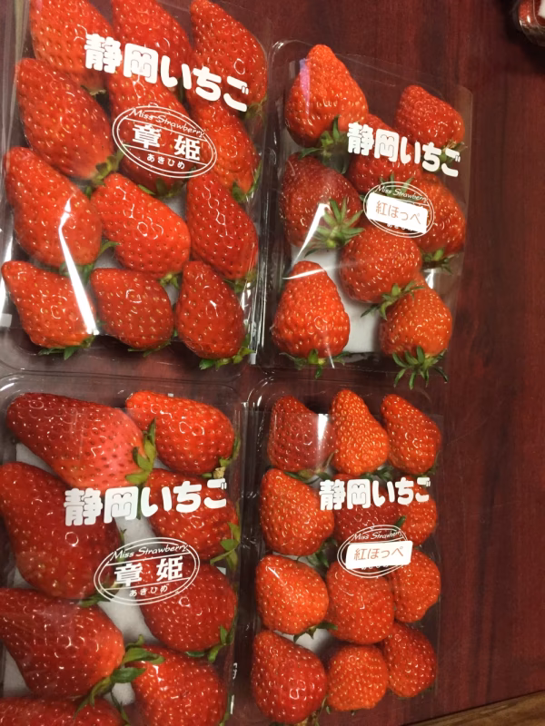 - 静岡の温暖な気候と有度山の南斜面を利用した「久能の石垣イチゴ」です。 市場流通が難しい完熟のイチゴを摘みたての新鮮さと丁寧な梱包でお届けします。イチゴ狩りで真っ赤なイチゴを食べるのと同様な新鮮さと甘さをお楽しみください。 【石垣イチゴ】 明治29年に当地で始まったとされる伝統農法で日当たりの良い南向き斜面に石垣を作りそこにイチゴを植えることで太陽熱で温まった石垣により冬でもイチゴの栽培ができます。 【紅ほっぺ、あきひめ】 紅ほっぺ、あきひめともに静岡で作られた伝統的な品種で紅ほっぺは糖酸バランスに優れた大粒のやや硬い品種で断面が美しくスイーツなどに最適です。あきひめは甘く柔らかい果肉で生食でたいへん美味しく召し上がれます。一方、その柔らかさゆえに完熟した品の市場流通はたいへん困難で静岡以外でみかけることは少ないと思います。 【当園での栽培方法】 収穫期間では化学農薬を使わない方針で努力しております。土づくりにより病気にかかりにくい株を育てること、天敵利用での害虫防除、生物農薬の利用、コンビネーションプランツの利用など統合的な病害虫防除(IPM)を目指します。 11月から現在(4/1日)まで化学農薬は使っておりませんが暖かくなって病気や害虫が増えております。予告なく化学農薬を使う可能性はあります。使用した場合は速やかにコミュニティで報告します。 【梱包など】 さまざまなサイズのイチゴを2段で1パックにします。1パックに12粒〜20粒程度になります。 あきひめ3パック、紅ほっぺ1パックを予定しておりますが収量によって前後する場合があります。 形の悪い物や色合いの悪いものが入る場合があります。サイズが不揃いな場合もあります。
