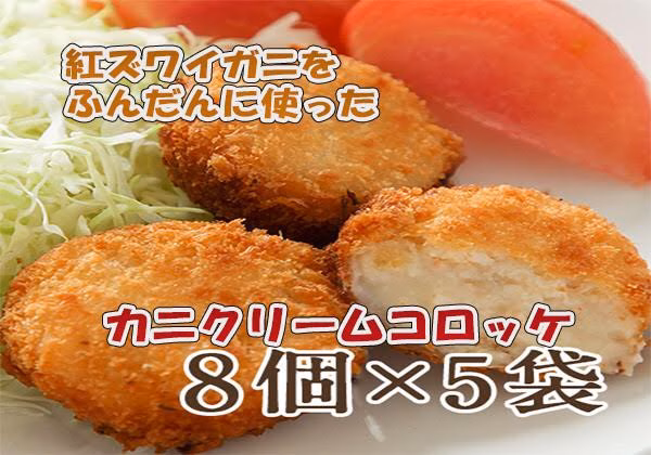 - 【名称】カニクリームコロッケ 【原材料名】パン粉、牛乳、ベニズワイガニ肉、小麦粉、植物性油脂、玉葱、砂糖、澱粉、カニエキス、食塩、チキンコンソメ、胡椒/焼成カルシウム、膨張剤、増粘剤(アルギニン産Na、増粘多糖類)、調味料(アミノ酸等)、乳化剤、香料、加工澱粉、(一部にエビ、カニ、小麦、乳成分、大豆、鶏肉、豚肉、牛肉、ゼラチンを含む) 【内容量】8個入り 【保存方法】要冷凍(-18度以下)