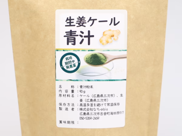 合成甘味料、香料、保存料は使わずに、安全と安心にこだわった広島県産の生姜とケールだけを使っています。