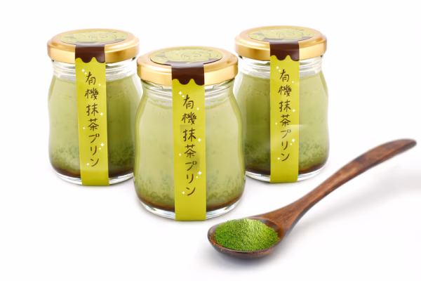 ※静岡県産の有機抹茶100%使用。ホンモノの抹茶100%使用の場合退色するので、一般的な抹茶プリンは着色料を使用しています。当店は贅沢に100%使用!しかも有機栽培!