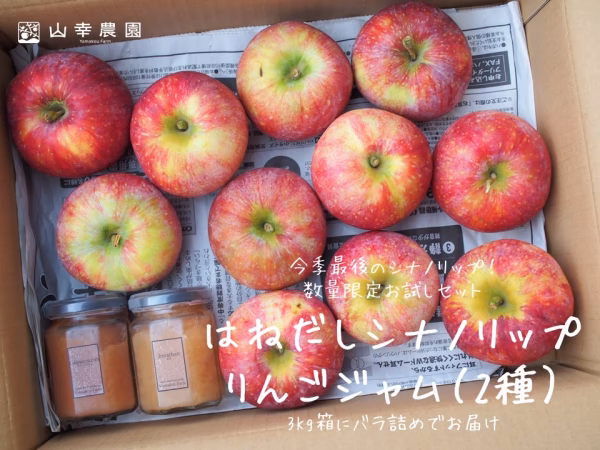 当園の一番最初のりんご「シナノリップ」。お陰様でご好評いただき、はねだしをわずかばかり残して完売となりました!状態のいいはねだしシナノリップと、当園の人気ツートップのりんごジャム「グラニースミス」と「紅玉」をセットにして、販売させていただきます。