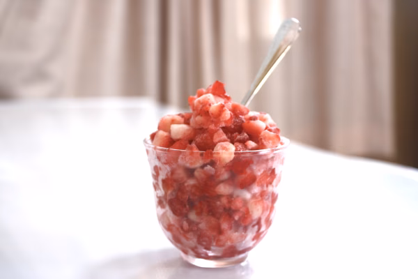 冷凍イチゴですが、半解凍状態になるまで待つ必要はなく、すぐに食べれるようにと考えました。