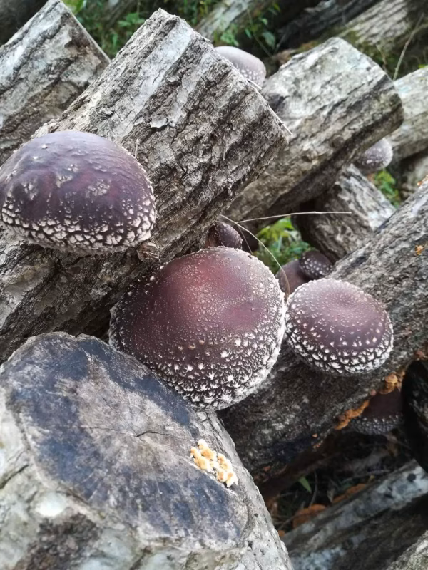 森のなかで育つ原木しいたけ。春と秋の短い間だけ味わえる贅沢なしいたけです。肉厚でぷりぷりな食感は他では味わえない逸品です。