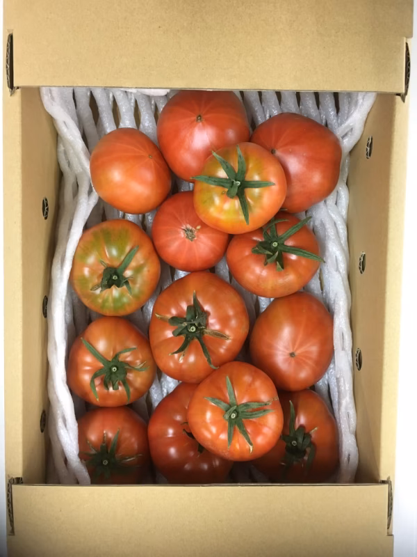 大島トマトとは糖度8度以上のファーストパワーという大玉品種です。全国的に産地が少なくなり希少な品種です。水や肥料でストレスを与え、糖度・酸度・栄養価が高いトマトになります。果肉が硬く、実がギュッと詰まっており、トマト本来の甘みと酸味のバランスが絶妙!