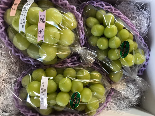 シャインマスカットの子どもで、新品種です。市場にはなかなか出回っていません。