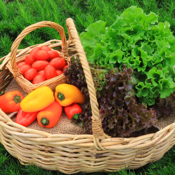 - 各商品冷蔵庫にて、シュガープラム・パプリカは2週間、レタスは1週間