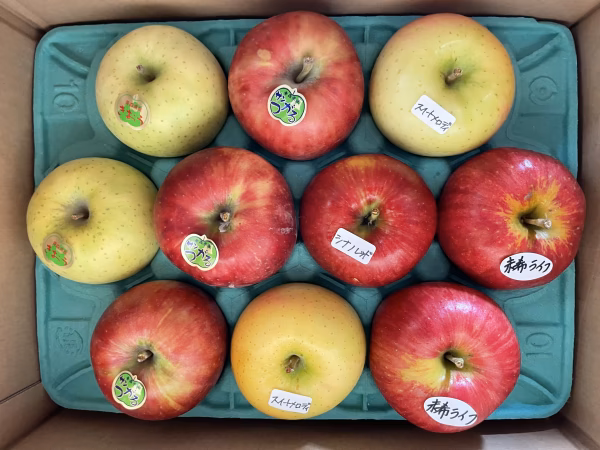 - 9月8日にて、シナノレッドの在庫がなくなったため、サンツガル、きおう、未希ライフ、スイートメロディの4種の詰め合わせ+aになります!
