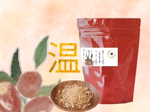 ★ひね生姜、なつめ、玄米など、カラダを芯から温める薬効植物をたっぷり配合したうまぶどうブレンドティーです★ ★ウマブドウとは★ ブドウ科ノブドウ属のつる性落葉低木のことで、正式名称はノブドウです。 香川では、薬用酒や健康茶、滋養強壮のジュースとして、古くから愛され利用されています。 13色もの果実を実らせることと、木まるごと一本全てに薬用効果があるのが特徴です。 副作用の報告はまだ1件もなく、とても希有な薬用植物としてぜひ全国の皆様にご活用いただきたい薬用植物です。 ★なつめとは★ 主に「気」「血」を補う温性の薬効を持つと言われ、血と水を作りコントロールすることで、冷えの解消・貧血の改善・免疫力アップなど、多くの効果が謳われています。 五臓の脾(ひ)の働きを助ける「脾の果」という別名があるほど脾(お腹)にとってもよい生薬です。 ★ひね生姜とは★ 収穫した生姜を蔵で半年~1年間寝かしたものを【古根(ひね)生姜】と呼び、古根生姜は新ショウガに比べ、より辛みが強いのが特徴です。この古根生姜をふんだんに使用することにより、その辛み成分がカラダをよりいっそう温める効果が期待できます。 <茶葉・味> 血流改善作用のあるウマブドウをベースにしながらも、香ばしさをもつ玄米、カラダを温めるなつめ、ひね生姜を加えるなどして、飲みやすくマイルドに仕上げました。 ノンカフェインですので、就寝前でもお飲みいただけます。 <お召し上がり方> ティーバッグを急須や湯呑に入れ、お湯を注いで3分ほど蒸らしてからお召し上がりください。 尚、葉っぱ舎ではより多くの薬効成分をお召し上がりいただきたく、煮出し(煎じ茶)をオススメしております。 【水から】茶葉を入れ、沸騰するまでは強火、沸騰後は弱火にし、コトコト20分ほど煎じていただくことで、より薬効成分の濃いお茶をお召し上がりいただけます。 <加工のこだわり> ポリフェノール、フィトケミカルを守る加工がしたい! 葉っぱ舎では主に「修治」という方法で加工しています。 通常、生薬は高温の熱風乾燥など、大量生産型の処理が多いのですが、フィトケミカルの分解を防ぐため、減圧して蒸したり、低温の風で乾燥させたり、成分維持に積極的でありながらも自然に近い加工をしています。 <栽培のこだわり> ひね生姜はじめ、材料全てを当農園で育てています。 うまぶどうは、讃岐平野に根だけで生き続けてきた野生種を自然栽培農場で移植栽培しています。 動物性堆肥、農薬、肥料は一切使用せず、植物を堆肥化させた土のみで育てております。 ポリフェノールをよりアップさせる農法(マルチの利用、虫の排除時期の操作)で2017年香川ビジネス&パブリックコンペでグランプリをいただきました! <産地の特徴> 瀬戸の【海風】が吹き抜ける広い丘で育てています。海風を走らせる工夫をすることにより、農薬を使わずダニやカビを抑え、目には見えにくい葉裏の衛生面にも配慮しております。 球場4個分ほどの鉄柵で囲われた農地の中、動物からの被害にも対応しております。 *海風・・・潮風とは異なり、気温の低い海面から気温の高い陸地に向かって吹く風。【農薬いらずの風】と言われ、農家にとっては有難い存在です。