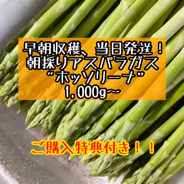 ご予約頂いた方には、瑞々しい来春のアスパラガスの早割の限定極秘商品ページを商品発送時にご案内させて頂きます。